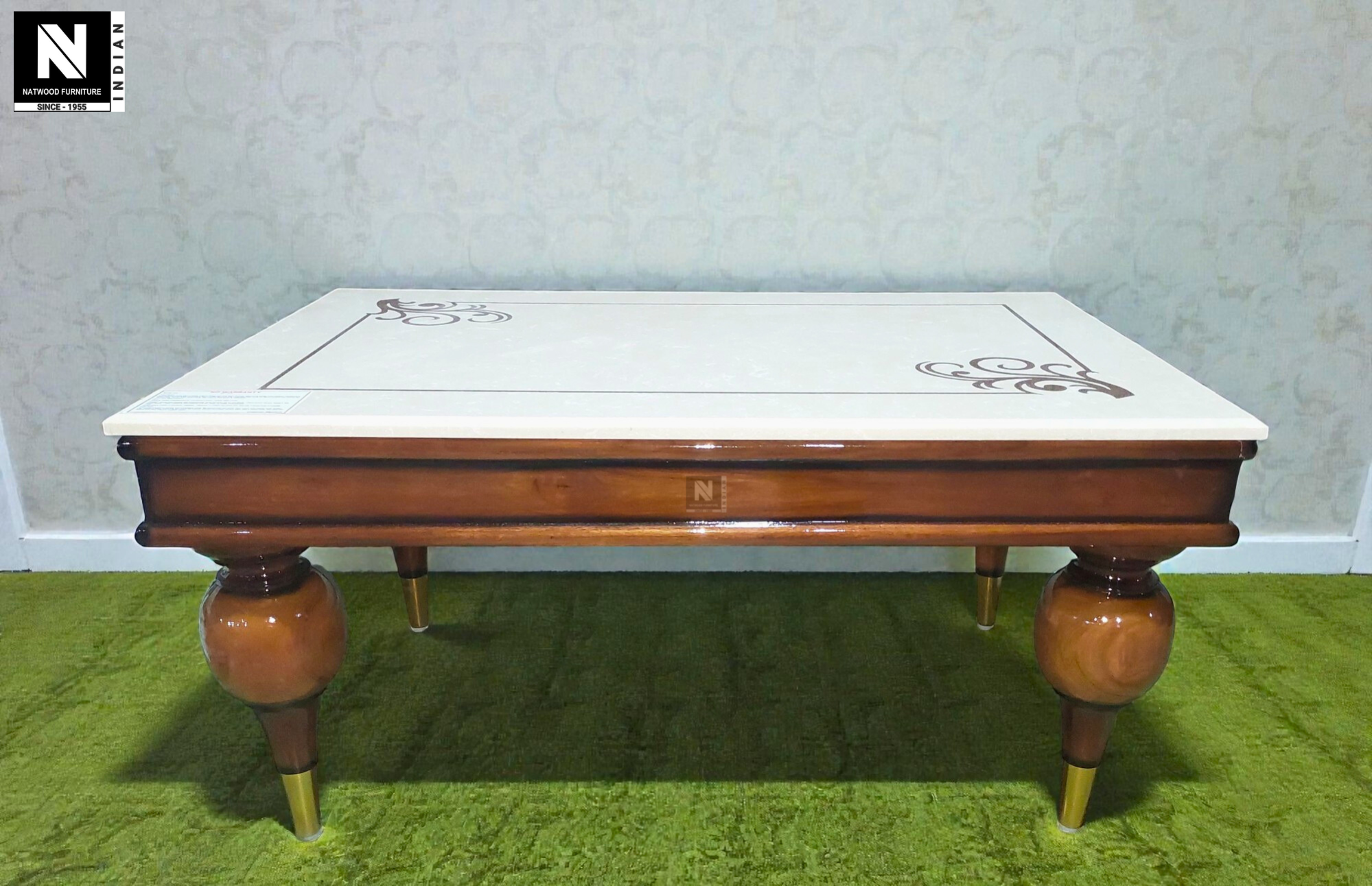 SI CAP CENTER TABLE WITH COMPOSIT BALL MARBEL TEAKWOOD & TEAKPLY