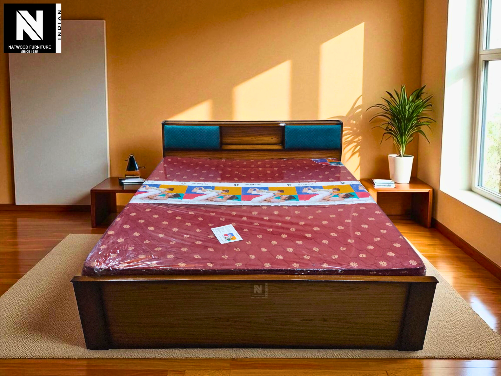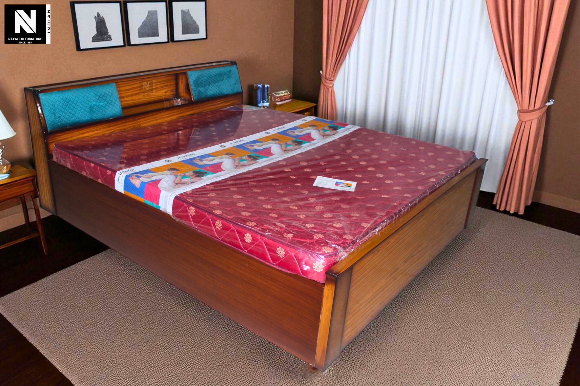 8 INCH DEEP BOX KING BED WITH HEADBOARD & HYDRAULIC STORAGE TEAKWOOD & TEAKPLY
