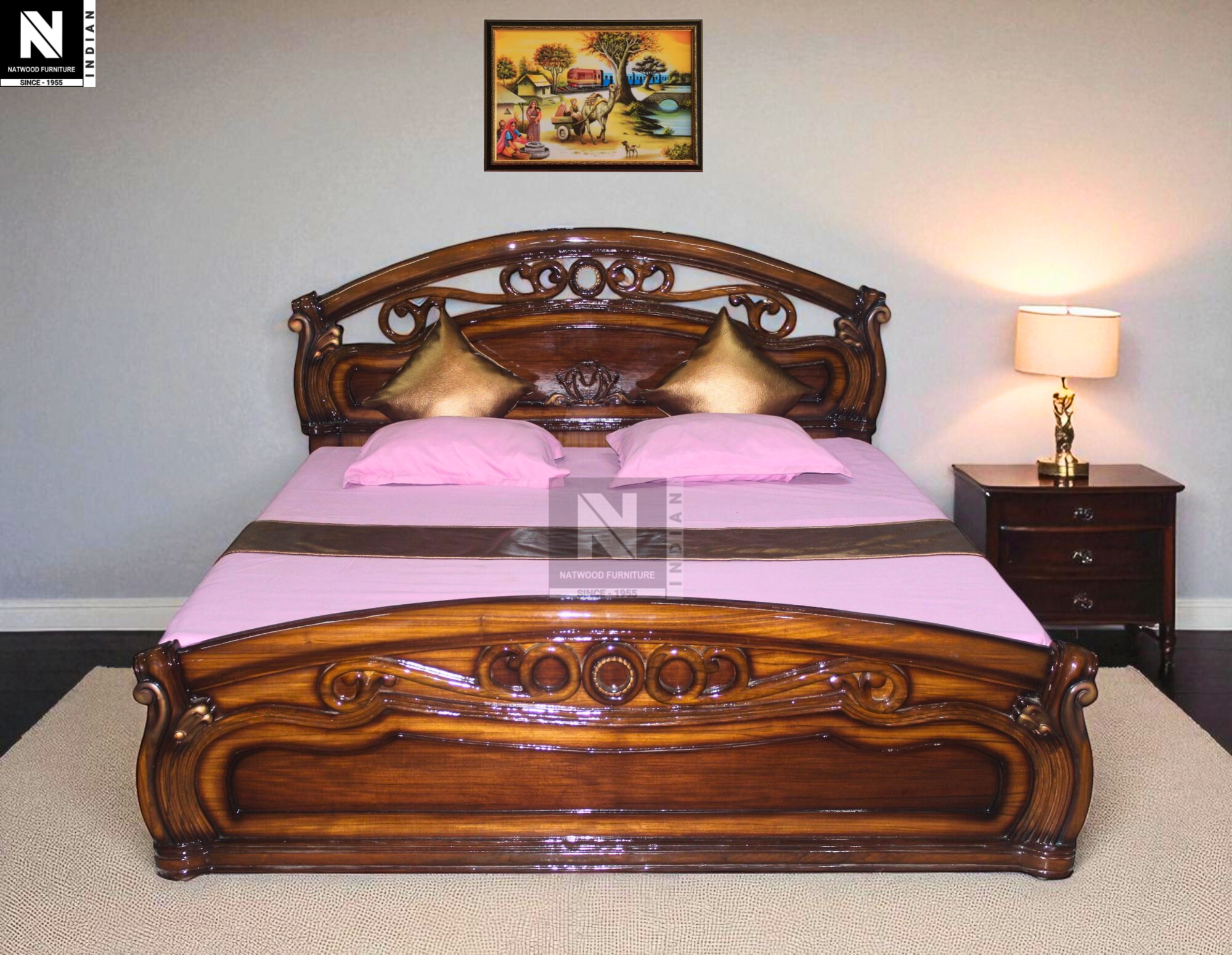 FOKOR RING KING BED WITH HYDRAULIC STORAGE TEAKWOOD & TEAKPLY