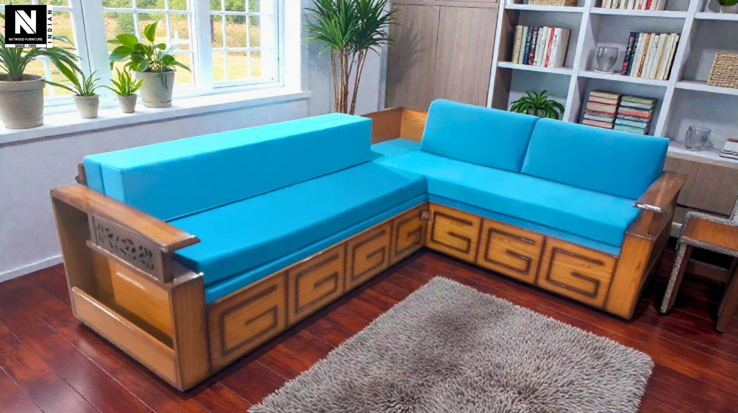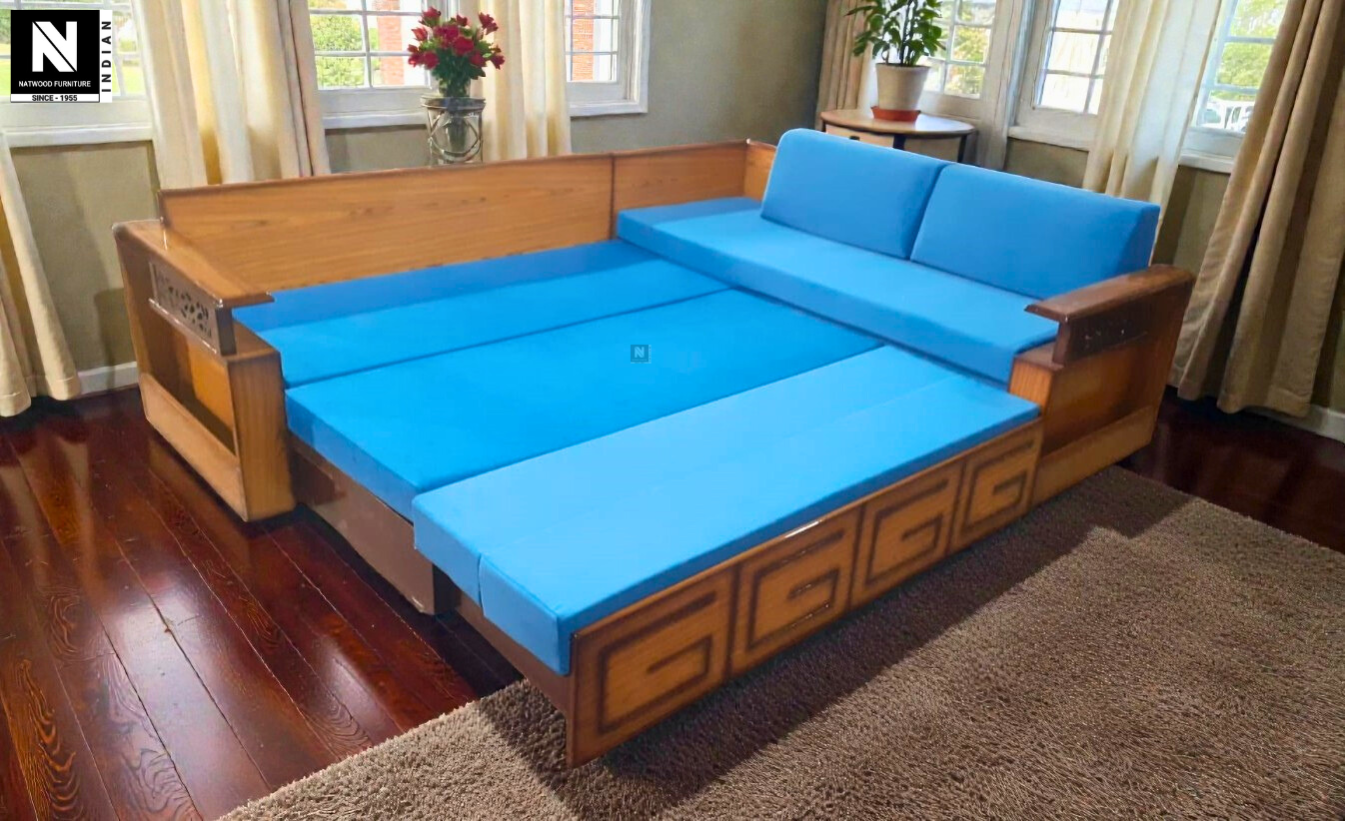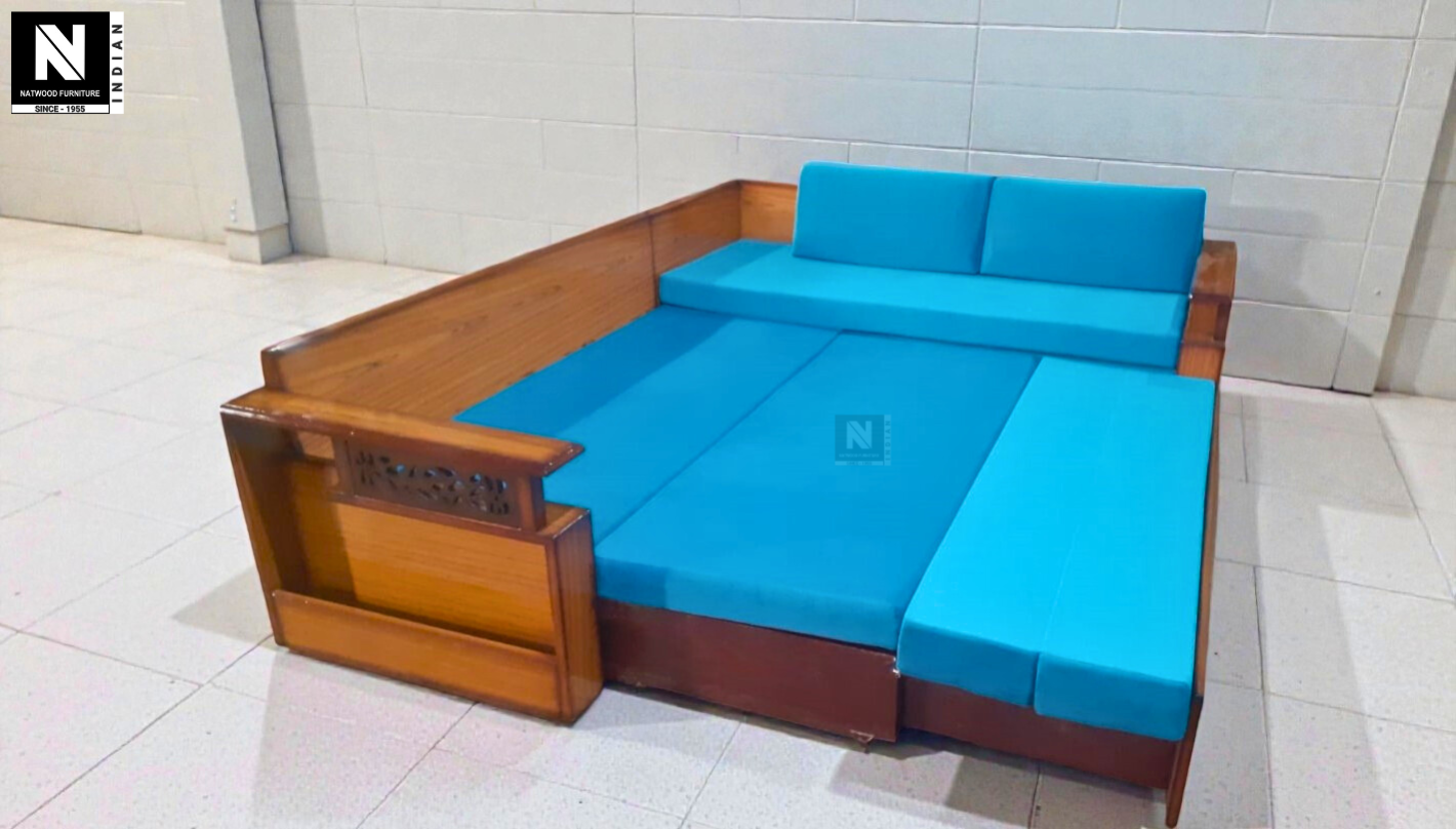 G MODEL L SOFA CUM BED TEAKWOOD & TEAKPLY