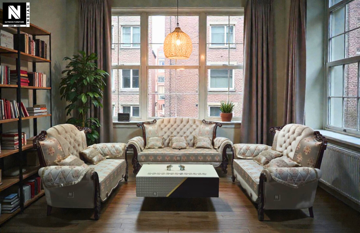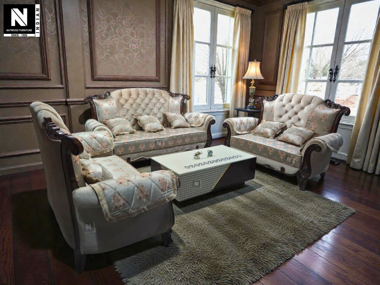 MERINO 3+2+2 SOFA SET WITH SA DIAMOND DESIGN CENTER TABLE TEALWOOD & TEAKPLY