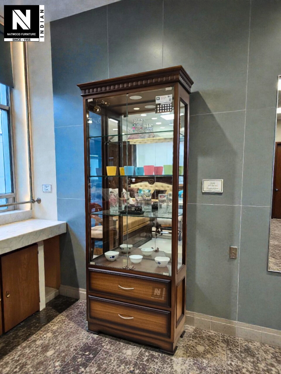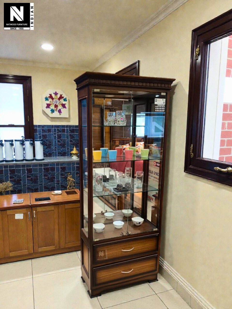 NF 26'' CROCKERY TEAKWOOD & TEAKPLY WITH PREMIUP QUALITY GLASS & MIRROR