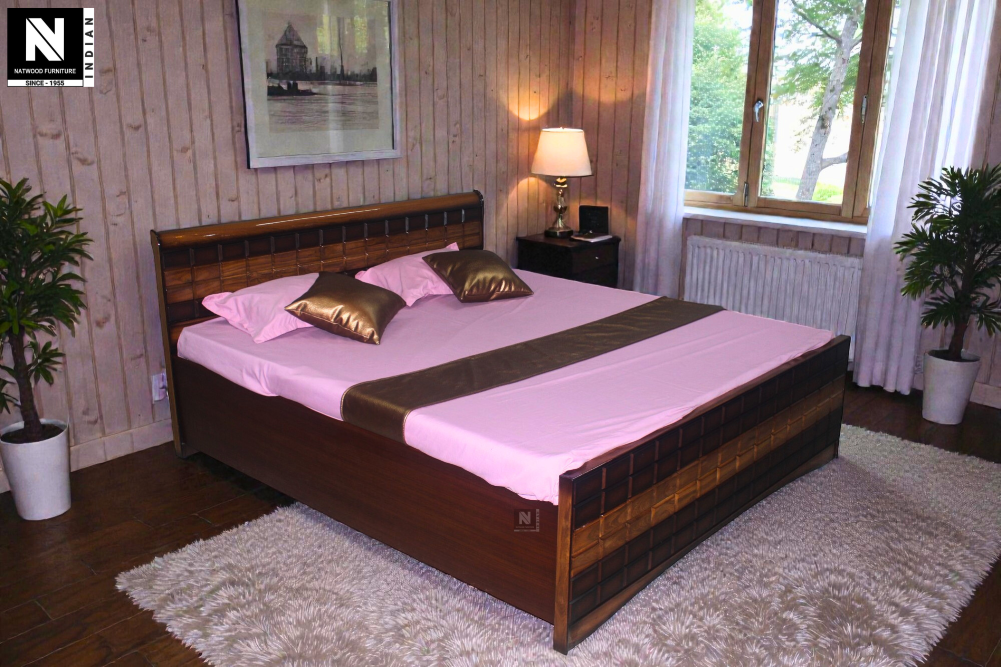 NF 4X3 BEND CADBURY TEAKWOOD & TEAKPLY HYDRAULIC STORAGE KING BED