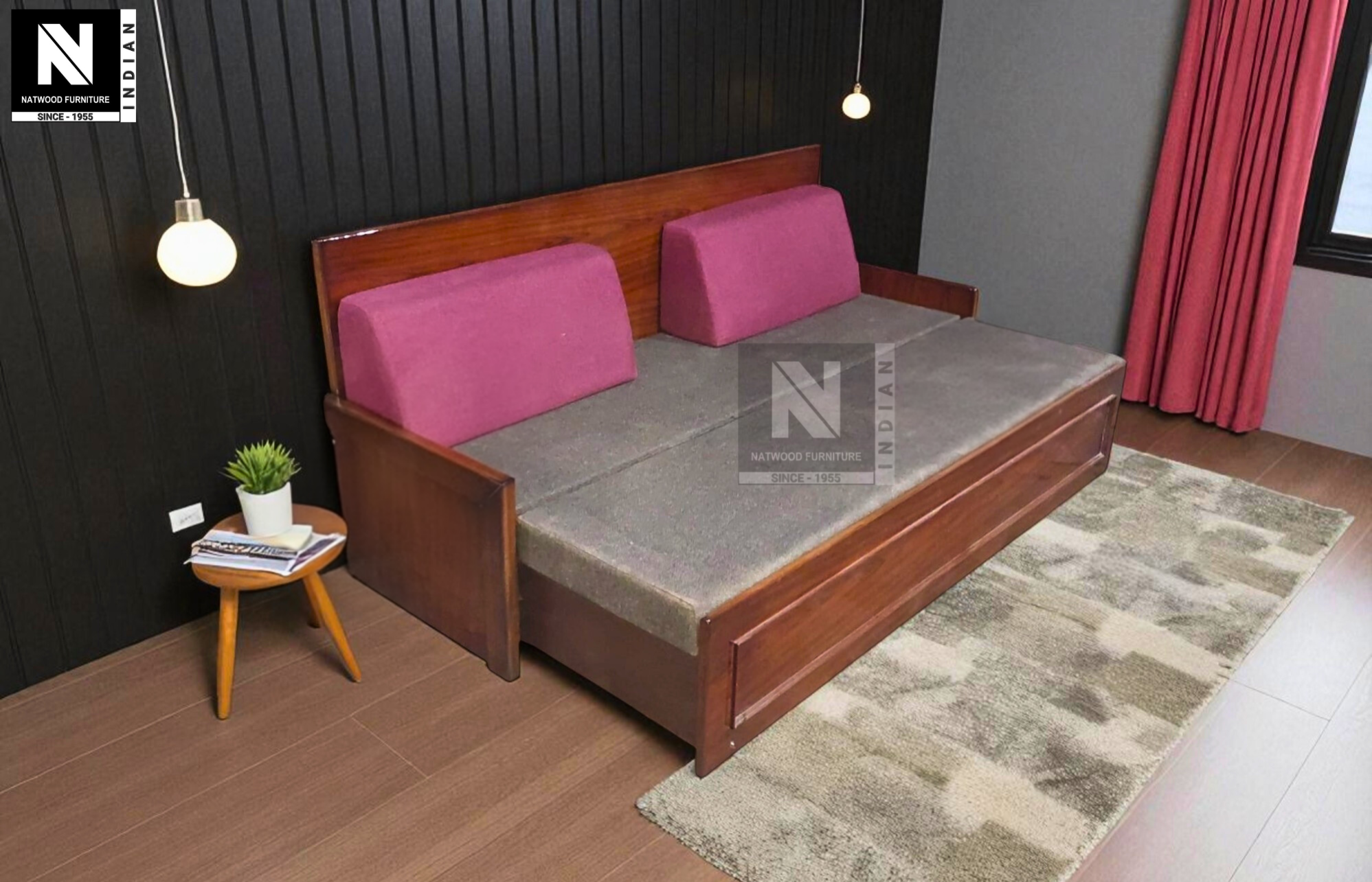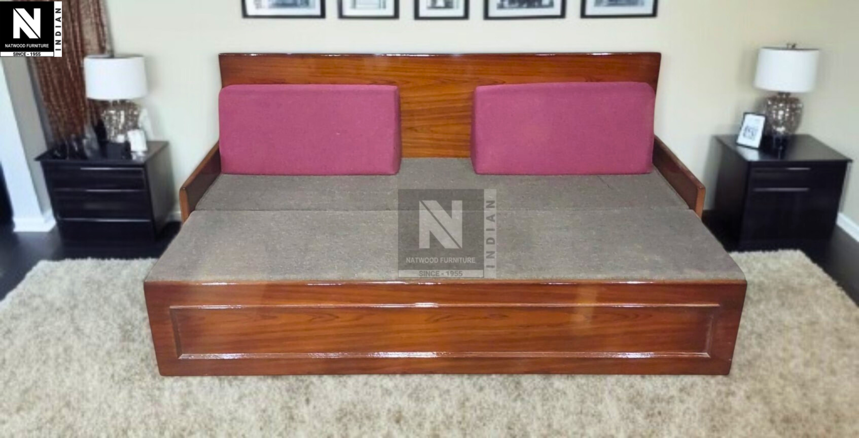NF ECO SMALL SOFA CUM BED TEAKWOOD & TEAKPLY