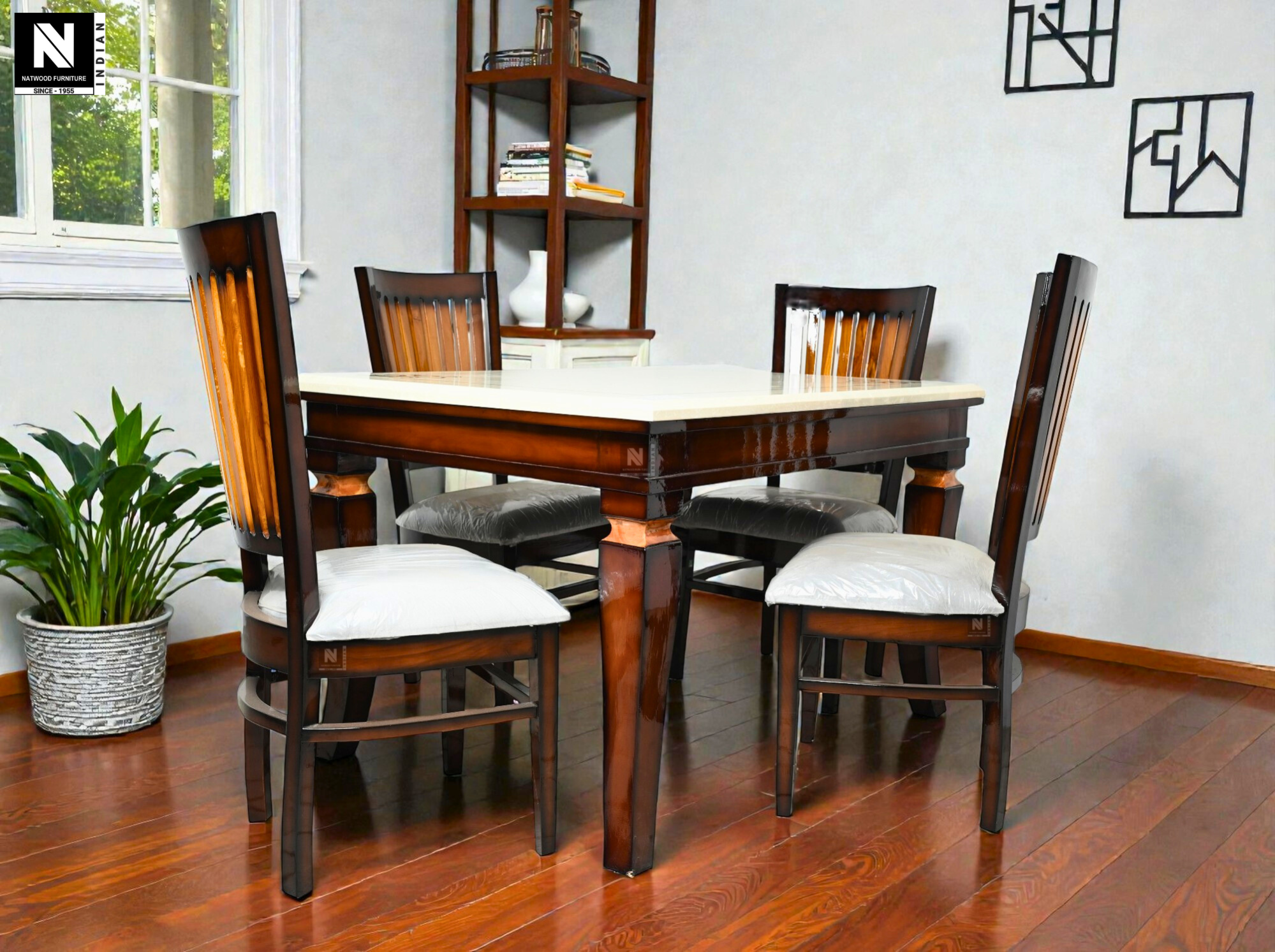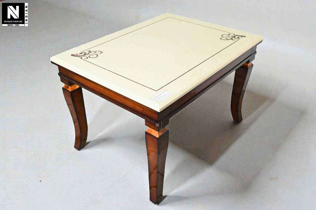 NF GOLRIP FOUR SEATER DINING TABLE WITH INDIAN BIT COMPOSIT MARBEL & NEW TOGRA GODI TOP 4PCS CHAIR