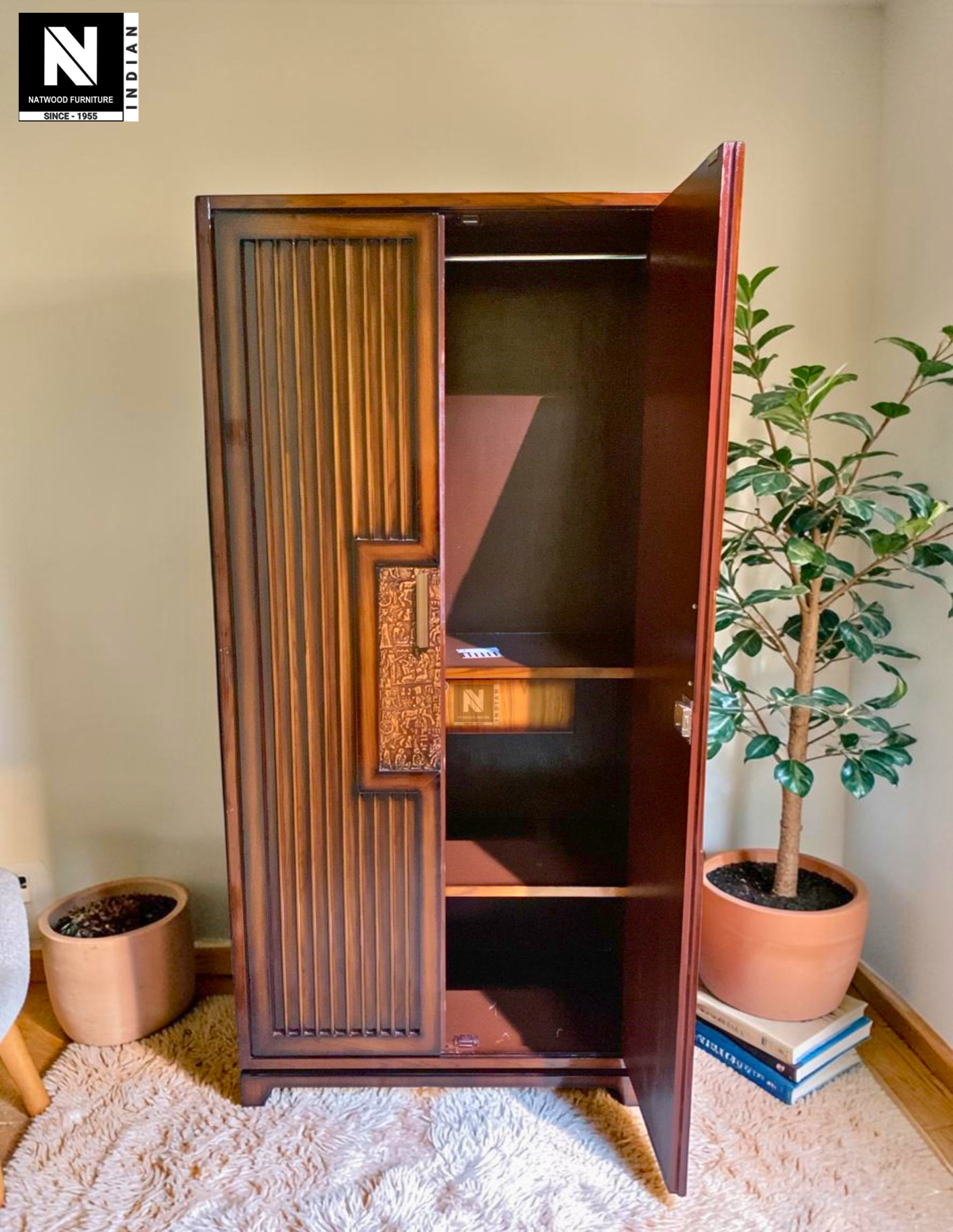 STRAIGHT LINE 2DOOR WARDROBE TEAKWOOD & TEAKPLY